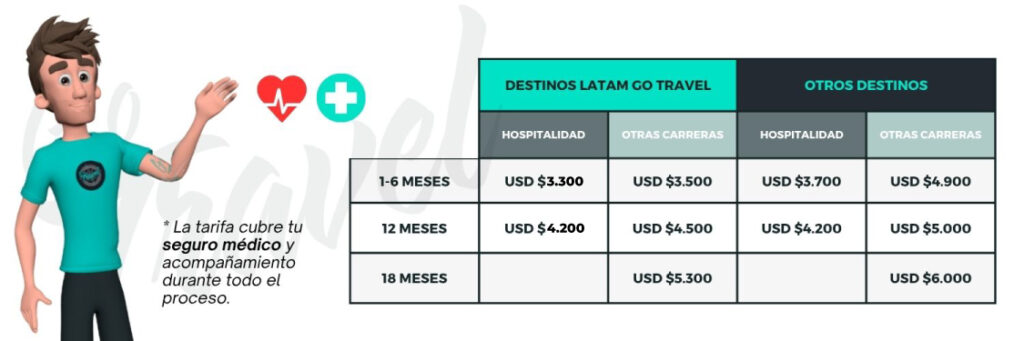 • Programas hasta 12 meses: USD $ 2,400.